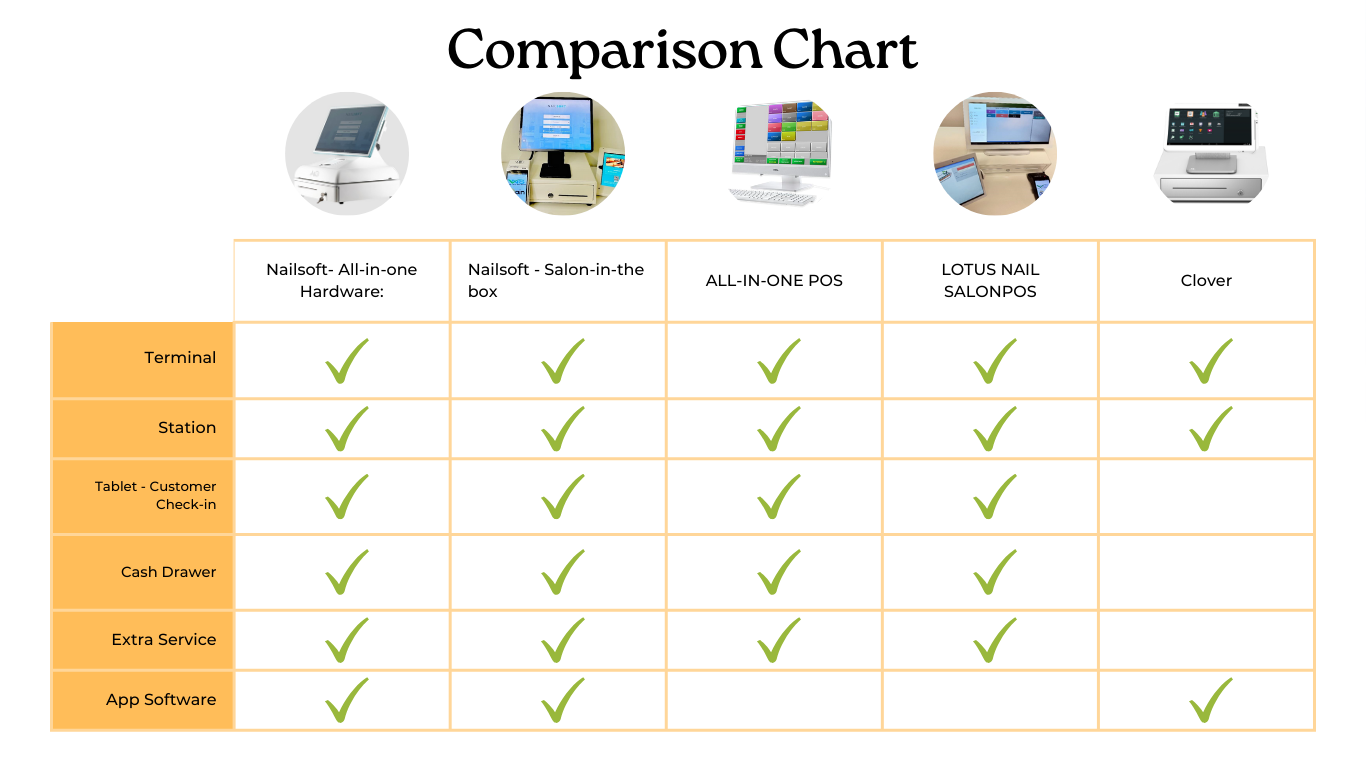 You're correct that the above features are standard in many POS systems. However, Nail Soft goes beyond by offering additional exclusive features: