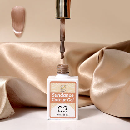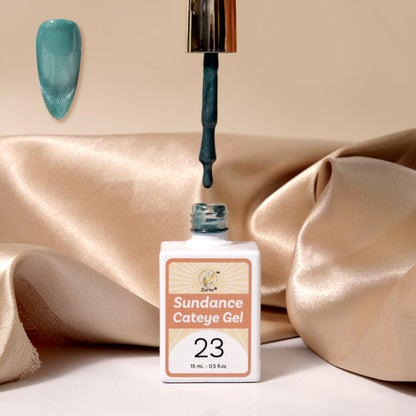 The Sundance cateye gel effect delivers a captivating look by reflecting different hues depending on the lighting angle. This durable gel nail polish ensures long-lasting elegance for your nails. With smooth application and fast-drying properties, it prevents smudges and streaks. The magnetic patterns reveal vibrant colors that stand out beautifully in natural light. Easy Application